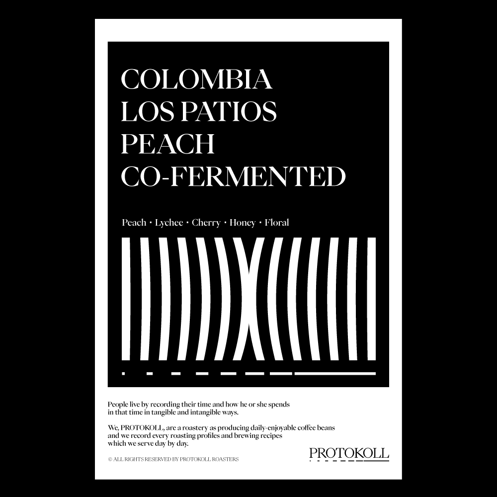 [2026] 첫 모금에서 복숭아와 리치를 닮은 풍성한 과육감과 체리와 살구를 연상시키는 과일의 달콤한 산미가 나타납니다.시간이 지날수록 꿀처럼 부드러운 질감의 단맛을 느낄 수 있습니다.무산소 발효 후 복숭아 농축액을 함께 발효하는 코퍼먼티드 방식으로, 과일 향미가 커피 내부에 은은하게 스며들도록 설계되었습니다.균일한 건조와 모니터링을 통해 향은 선명하지만 과하지 않게 표현되었습니다.연중 생산이 가능한 콜롬비아의 환경과 다채로운 시도와 가공 노하우가 결합된 인퓨징 커피입니다. 원산지 Colombia지역 La Plata, Huila, Colombia품종 Blend가공 Co-Fermented고도 1,600 - 1,900m 커핑노트 Cupping NotePeach・Lychee・Cherry・Honey・Floral복숭아・리치・체리・꿀・플로럴 브루잉 가이드 레시피프로토콜의 브루잉 레시피입니다. 이 레시피는 원두 고유의 캐릭터를 또렷하게 느낄 수 있도록 전체적인 밸런스가 잘 느껴지도록 제안합니다. 안내된 방법에 따라 추출하시면, 프로토콜이 생각하는 맛있는 한 잔의 흐름을 가장 안정적으로 즐기실 수 있습니다. 하리오 V60 드리퍼를 기준으로 합니다 추출 전 필터지는 뜨거운 물로 충분히 린싱해 종이 향을 제거하고, 안정적인 추출 환경을 만들어 주세요. [HOT]원두는 18g, 물 온도는 94도를 사용합니다. 다음과 같이 물을 부어줍니다.(뜸) 40g – (30초) 100g – (1분) 80g – (1분 30초) 80g 총 300g의 물을 사용하며,대략적으로 2분 30초 내외로 추출이 완료됩니다. [ICE]원두는 20g, 물 온도는 94도를 사용합니다. 드립 서버에 얼음을 8알 정도를 담고 다음과 같이 물을 부어줍니다.(뜸) 40g – (30초) 60g – (1분) 50g – (1분 30초) 50g 총 200g의 물을 사용하며,대략적으로 2분 10초 내외로 추출이 완료됩니다.