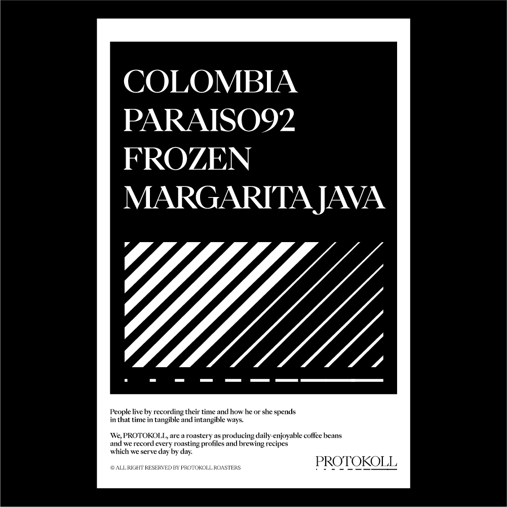 [2022] 파라이소 92농장은 Wilton Benitez에 의해 2015년에 설립되었습니다.전략적인 분석을 통해 역사적으로 세계 최고의 커피가 발견되는 적도 부근에 위치하였습니다.파라이소92 농장명에서 92는 생산하는 모든 커피를 92점 이상의 커피로 만들겠다는 포부가 담겨있다고 합니다.엘파라이소 농장과 혁신적인 커피 발효 기술 부분에 있어 어깨를 나란히 하는 콜롬비아 최고의 커피 발효 연구소 및 농장입니다.신생 농장이지만 단기간에 많은 수상 경력과 높은 인지도를 가지고 있습니다.프로토콜에서 지난 여름 판매했던 애플 푸딩 게이샤와 같은 농장의 유사한 뉘앙스를 지닌 커피입니다.애플 푸딩 게이샤가 너무 소량 입고되어 아쉬운 마음이었는데 이 커피를 접하고 애플 푸딩 게이샤를 대체할 수 있을 거 같아 오랜만에 설레는 마음으로 로스팅 했습니다.청사과를 베어 문 듯한 청량감과 시원한 민트향이 좋아 얼마 안 되게 아이스로 드시기를 권장하는 커피입니다. 원산지 Colombia지역 Cauca, Granja Paraíso92품종 Java가공 Natural ASD고도 1,950m 커핑노트 Cupping NoteApple Mint • Rosemary • Lemon • Earl Grey애플민트 • 로즈마리 • 레몬 • 얼그레이 홍차 브루잉 가이드 레시피프로토콜의 브루잉 레시피입니다. 이 레시피는 원두 고유의 캐릭터를 또렷하게 느낄 수 있도록 전체적인 밸런스가 잘 느껴지도록 제안합니다. 안내된 방법에 따라 추출하시면, 프로토콜이 생각하는 맛있는 한 잔의 흐름을 가장 안정적으로 즐기실 수 있습니다. 하리오 V60 드리퍼를 기준으로 합니다 추출 전 필터지는 뜨거운 물로 충분히 린싱해 종이 향을 제거하고, 안정적인 추출 환경을 만들어 주세요. [HOT]원두는 18g, 물 온도는 94도를 사용합니다. 다음과 같이 물을 부어줍니다.(뜸) 40g – (30초) 100g – (1분) 80g – (1분 30초) 80g 총 300g의 물을 사용하며,대략적으로 2분 30초 내외로 추출이 완료됩니다. [ICE]원두는 20g, 물 온도는 94도를 사용합니다. 드립 서버에 얼음을 8알 정도를 담고 다음과 같이 물을 부어줍니다.(뜸) 40g – (30초) 60g – (1분) 50g – (1분 30초) 50g 총 200g의 물을 사용하며,대략적으로 2분 10초 내외로 추출이 완료됩니다.