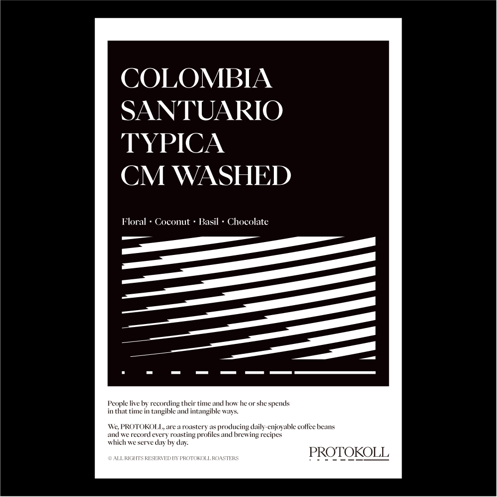 [2024] 이 커피는 23브릭스 이상의 당도를 가진 체리를 선별한 후 2시간 동안 물에 담가 둡니다.그 다음 75%의 점액을 남긴 상태로 펄핑 후, 23시간 동안 탄산 침용 발효( Carbonic Maceration)를 진행합니다.이후 21일 동안 아프리칸 베드에서 천천히 건조하며 건조된 체리는 그레인 프로 백에 넣어 14일 동안 안정화를 진행합니다.이와 같은 프로세싱을 거친 이 커피는 꽃향기를 시작으로 코코넛, 초콜릿 같은 진하고 깊은 풍미를 맛볼 수 있으며 묵직한 볼륨감이 있어 마신 후에도 오랫동안 기분 좋은 잔향을 느낄 수 있습니다. 원산지 Colombia지역 Cauca, Santuario품종 Typica 가공 Carbonic Maceration Washed Fermented고도 1,650-2,000m 커핑노트 Cupping NoteFloral • Coconut • Basil • Chocolate플로럴 • 코코넛 • 바질 • 초콜릿 브루잉 가이드 레시피프로토콜의 브루잉 레시피입니다. 이 레시피는 원두 고유의 캐릭터를 또렷하게 느낄 수 있도록 전체적인 밸런스가 잘 느껴지도록 제안합니다. 안내된 방법에 따라 추출하시면, 프로토콜이 생각하는 맛있는 한 잔의 흐름을 가장 안정적으로 즐기실 수 있습니다. 하리오 V60 드리퍼를 기준으로 합니다 추출 전 필터지는 뜨거운 물로 충분히 린싱해 종이 향을 제거하고, 안정적인 추출 환경을 만들어 주세요. [HOT]원두는 18g, 물 온도는 94도를 사용합니다. 다음과 같이 물을 부어줍니다.(뜸) 40g – (30초) 100g – (1분) 80g – (1분 30초) 80g 총 300g의 물을 사용하며,대략적으로 2분 30초 내외로 추출이 완료됩니다. [ICE]원두는 20g, 물 온도는 94도를 사용합니다. 드립 서버에 얼음을 8알 정도를 담고 다음과 같이 물을 부어줍니다.(뜸) 40g – (30초) 60g – (1분) 50g – (1분 30초) 50g 총 200g의 물을 사용하며,대략적으로 2분 10초 내외로 추출이 완료됩니다.
