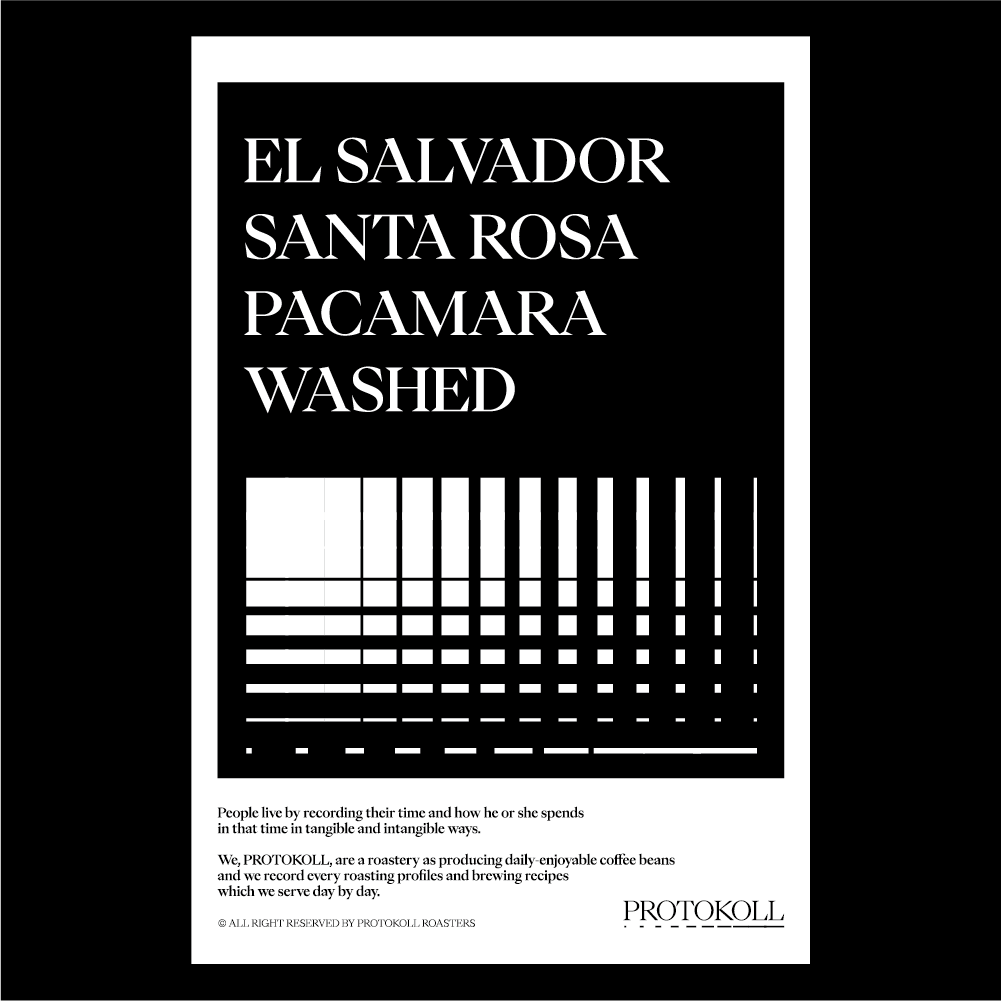[2021] 산타로사 농장은 2019년 COE 1위를 비롯해 우수한 품질로 매해 좋은 성적을 기록하고 있습니다.파카마라라는 품종은 엘살바도르 커피 연구소에서 개발한 커피 품종입니다.키가 작으며 악기후에도 잘 자라는 파카스와 키가 크고 생산성이 떨어지지만 맛이 좋은 마라고지페의 장점들을 모아 교배시킨 품종입니다.그래서 두 품종의 앞 글자를 따서 파카스의 파카와 마라고지폐의 마라를 합쳐 파카마라라고 부릅니다.첫 모금에는 청사과와 레몬필의 향미가, 후미에는 아몬드와 같은 견과류의 고소한 단맛이 잘 나타나는 밸런스가 매우 좋은 커피입니다. 원산지 El Salvador지역 San Ignacio, Chalatenango품종 Pacamara가공 Washed고도 1,700m 커핑노트 Cupping NoteGreen Apple • Lemon Peel • Dried Plum • Almond청사과 • 레몬필 • 건자두 • 아몬드 브루잉 가이드 레시피프로토콜의 브루잉 레시피입니다. 이 레시피는 원두 고유의 캐릭터를 또렷하게 느낄 수 있도록 전체적인 밸런스가 잘 느껴지도록 제안합니다. 안내된 방법에 따라 추출하시면, 프로토콜이 생각하는 맛있는 한 잔의 흐름을 가장 안정적으로 즐기실 수 있습니다. 하리오 V60 드리퍼를 기준으로 합니다 추출 전 필터지는 뜨거운 물로 충분히 린싱해 종이 향을 제거하고, 안정적인 추출 환경을 만들어 주세요. [HOT]원두는 18g, 물 온도는 94도를 사용합니다. 다음과 같이 물을 부어줍니다.(뜸) 40g – (30초) 100g – (1분) 80g – (1분 30초) 80g 총 300g의 물을 사용하며,대략적으로 2분 30초 내외로 추출이 완료됩니다. [ICE]원두는 20g, 물 온도는 94도를 사용합니다. 드립 서버에 얼음을 8알 정도를 담고 다음과 같이 물을 부어줍니다.(뜸) 40g – (30초) 60g – (1분) 50g – (1분 30초) 50g 총 200g의 물을 사용하며,대략적으로 2분 10초 내외로 추출이 완료됩니다.