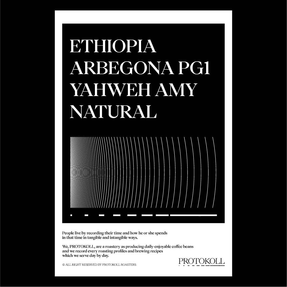 [2022] 시다모 지역에 위치한 아르베고나는 에티오피아 최고의 커피 종자를 재배하는 것으로 유명합니다.이 작은 마을의 해발고도는 평균 약 2,200m로 에티오피아 전체로 놓고 보아도 손에 꼽히는 고지대입니다.높은 고도와 에티오피아의 토종 품종이 결합되어 우리가 좋아하는 에티오피아 커피의 모든 특징이 잘 나타납니다.야웨 에이미는 PG1(프리미엄 g1) 등급의 커피입니다.초창기 에티오피아 커피가 특유의 폭발적인 꽃향기와 과일 향미로 각광받을 때만 해도 가공 공정 시스템이 열악한 곳이 많았습니다.2022년 현재도 환경이 극적으로 변했다 할 수 없지만, 가공의 중요성을 절실히 느끼는 몇몇의 생산자는 꾸준히 워싱 스테이션과 후가공 설비에 투자하여 G1 등급을 뛰어넘는 외향과 맛을 지는 프리미엄 G1 등급의 커피를 생산해 내기 시작했습니다.야웨 에이미는 한 마디로 과일 바구니라고 표현할 수 있습니다.딸기로 시작해 열대 과일 및 시트러스 과일 등 복합적인 과일 향미가 잘 나타납니다.후미에는 밀크 초콜릿 같은 뉘앙스와 은은한 자스민 향까지 느껴집니다. 원산지 Ethiopia지역 Sidamo, Arbegona품종 Kurume가공 Natural고도 1,995 - 2,230m 커핑노트 Cupping NoteStrawberry • Passionfruit • Orange • Juicy • Jasmine • Milk Chocolate딸기 • 패션후르츠 • 오렌지 • 주시 • 자스민 • 밀크 초콜릿 브루잉 가이드 레시피프로토콜의 브루잉 레시피입니다. 이 레시피는 원두 고유의 캐릭터를 또렷하게 느낄 수 있도록 전체적인 밸런스가 잘 느껴지도록 제안합니다. 안내된 방법에 따라 추출하시면, 프로토콜이 생각하는 맛있는 한 잔의 흐름을 가장 안정적으로 즐기실 수 있습니다. 하리오 V60 드리퍼를 기준으로 합니다 추출 전 필터지는 뜨거운 물로 충분히 린싱해 종이 향을 제거하고, 안정적인 추출 환경을 만들어 주세요. [HOT]원두는 18g, 물 온도는 94도를 사용합니다. 다음과 같이 물을 부어줍니다.(뜸) 40g – (30초) 100g – (1분) 80g – (1분 30초) 80g 총 300g의 물을 사용하며,대략적으로 2분 30초 내외로 추출이 완료됩니다. [ICE]원두는 20g, 물 온도는 94도를 사용합니다. 드립 서버에 얼음을 8알 정도를 담고 다음과 같이 물을 부어줍니다.(뜸) 40g – (30초) 60g – (1분) 50g – (1분 30초) 50g 총 200g의 물을 사용하며,대략적으로 2분 10초 내외로 추출이 완료됩니다.