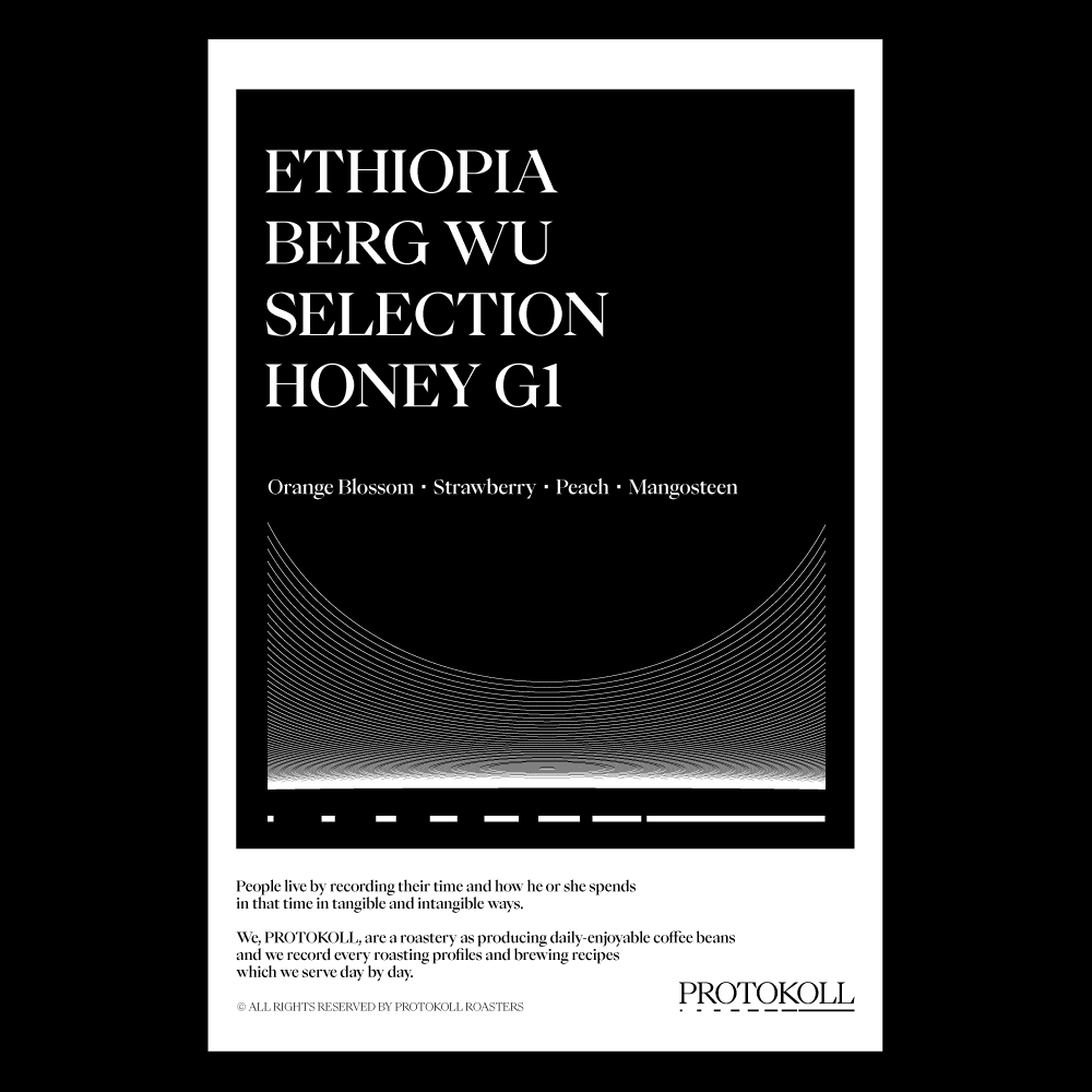[2026] 오렌지 블라썸의 부드럽고 달콤한 향으로 시작해 딸기와 복숭아를 연상시키는 잘 익은 붉은 과일의 산미와 단맛이 조화롭게 이어집니다.이어 망고스틴과 같은 열대과일의 다채로운 풍미가 더해지며 풍성하고 기분 좋은 여운을 남깁니다.이러한 향미는 허니 프로세스의 섬세한 가공에서 비롯됩니다.점액질의 양과 건조 중 발효, 습도와 온도, 햇빛까지 모든 조건을 정교하게 관리해 단맛과 향미를 안정적으로 끌어올렸습니다.2016년 월드 바리스타 챔피언인 Berg Wu가 선보이는 셀렉션으로2018년 첫 런칭 이후 매년 빠르게 완판될 만큼 꾸준한 사랑을 받아온 커피입니다. 원산지 Ethiopia지역 Oromia Region, West Guji Zone품종 Heirloom가공 Honey고도 1,450- 1,500m 커핑노트 Cupping NoteOrange Blossom・Strawberry・Peach・Mangosteen오렌지 블라썸・딸기・복숭아・망고스틴 브루잉 가이드 레시피프로토콜의 브루잉 레시피입니다. 이 레시피는 원두 고유의 캐릭터를 또렷하게 느낄 수 있도록 전체적인 밸런스가 잘 느껴지도록 제안합니다. 안내된 방법에 따라 추출하시면, 프로토콜이 생각하는 맛있는 한 잔의 흐름을 가장 안정적으로 즐기실 수 있습니다. 하리오 V60 드리퍼를 기준으로 합니다 추출 전 필터지는 뜨거운 물로 충분히 린싱해 종이 향을 제거하고, 안정적인 추출 환경을 만들어 주세요. [HOT]원두는 18g, 물 온도는 94도를 사용합니다. 다음과 같이 물을 부어줍니다.(뜸) 40g – (30초) 100g – (1분) 80g – (1분 30초) 80g 총 300g의 물을 사용하며,대략적으로 2분 30초 내외로 추출이 완료됩니다. [ICE]원두는 20g, 물 온도는 94도를 사용합니다. 드립 서버에 얼음을 8알 정도를 담고 다음과 같이 물을 부어줍니다.(뜸) 40g – (30초) 60g – (1분) 50g – (1분 30초) 50g 총 200g의 물을 사용하며,대략적으로 2분 10초 내외로 추출이 완료됩니다.
