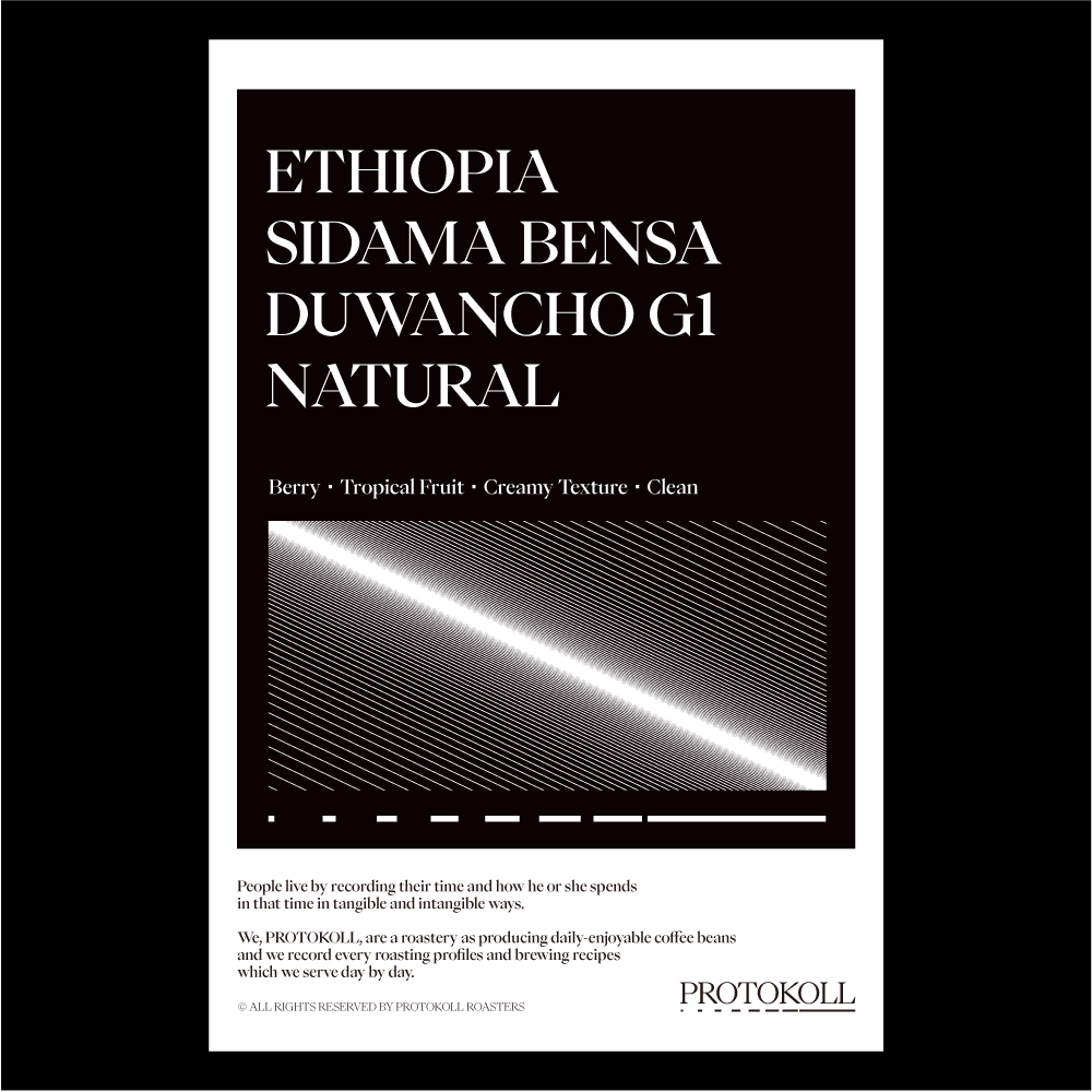 [2024] 2022년도 프로토콜에서 소개했던 두완초를 다시 한번 소개합니다.케라모 지역에서 수확한 잘 익은 커피체리를 가타 농장으로 가지고 와 세밀한 관리를 하면서 프로세싱을 진행합니다.잘 익은 체리를 농부로부터 수매 후 수조에 넣어 플로터를 제거하고 체리는 아프리칸 베드에서 일정한 수분량에 도달할 때까지 15-20일 동안 건조시킵니다.이 커피는 첫 모금부터 열대과일의 향미가 입안을 가득 메웁니다.매력적인 산미와 단맛, 쥬시한 마우스필과 크리미 바디, 게다가 클린한 애프터까지 좋은 조화를 가지고 있는 에티오피아 커피입니다. 원산지 Ethiopia지역 Sidama, Keramo kebele, Bensa Woreda품종 74158 가공 Natural고도 2,000 - 2,300m 커핑노트 Cupping NoteBerry • Tropical Fruit • Creamy Texture • Clean베리 • 열대과일 • 부드러운 질감 • 깔끔함 브루잉 가이드 레시피프로토콜의 브루잉 레시피입니다. 이 레시피는 원두 고유의 캐릭터를 또렷하게 느낄 수 있도록 전체적인 밸런스가 잘 느껴지도록 제안합니다. 안내된 방법에 따라 추출하시면, 프로토콜이 생각하는 맛있는 한 잔의 흐름을 가장 안정적으로 즐기실 수 있습니다. 하리오 V60 드리퍼를 기준으로 합니다 추출 전 필터지는 뜨거운 물로 충분히 린싱해 종이 향을 제거하고, 안정적인 추출 환경을 만들어 주세요. [HOT]원두는 18g, 물 온도는 94도를 사용합니다. 다음과 같이 물을 부어줍니다.(뜸) 40g – (30초) 100g – (1분) 80g – (1분 30초) 80g 총 300g의 물을 사용하며,대략적으로 2분 30초 내외로 추출이 완료됩니다. [ICE]원두는 20g, 물 온도는 94도를 사용합니다. 드립 서버에 얼음을 8알 정도를 담고 다음과 같이 물을 부어줍니다.(뜸) 40g – (30초) 60g – (1분) 50g – (1분 30초) 50g 총 200g의 물을 사용하며,대략적으로 2분 10초 내외로 추출이 완료됩니다.