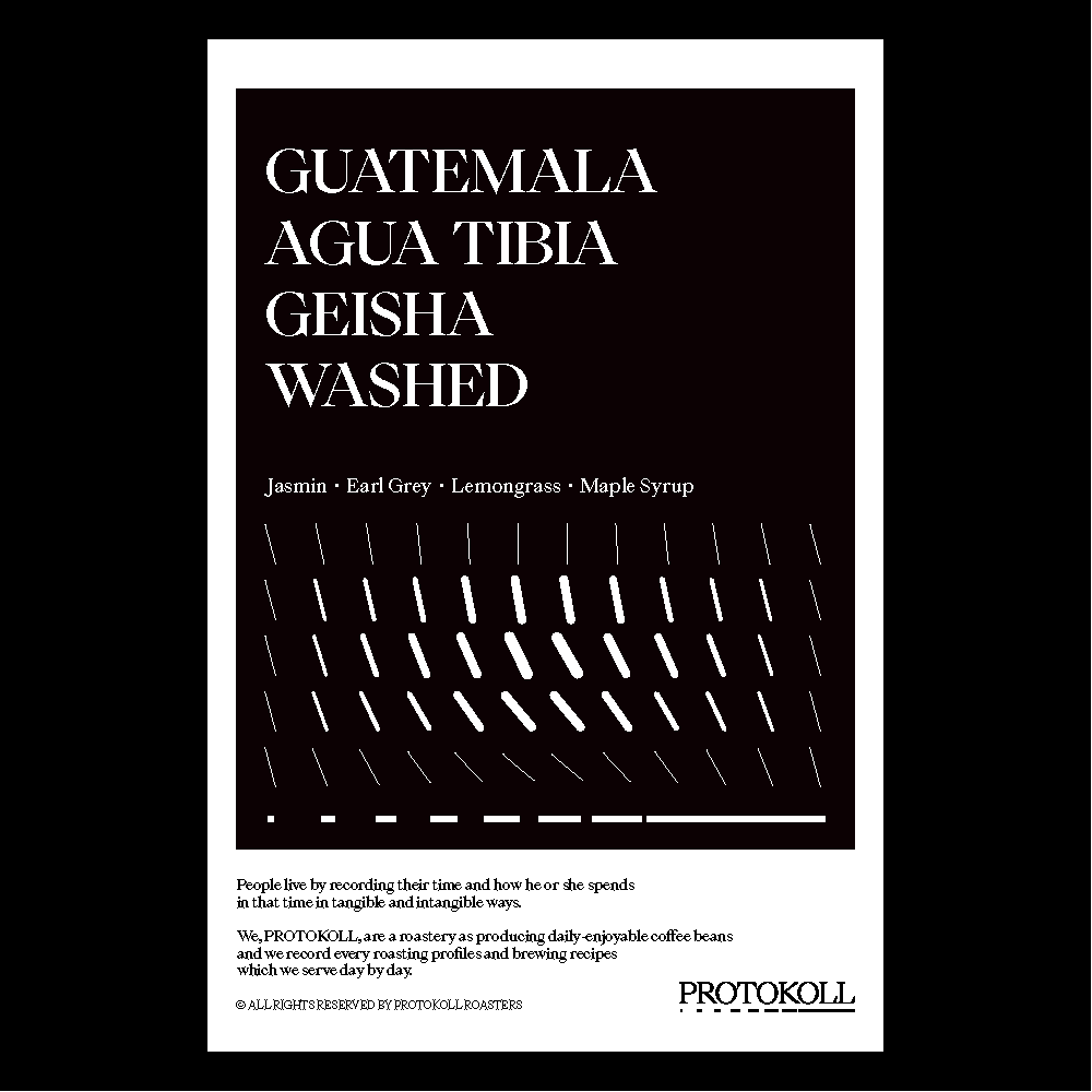 [2024] 게이샤 품종은 1930년에 에티오피아의 야생에서 발견되어 탄자니아의 연구소로 보내진 후 코스타리카 열대 농업 연구 교육센터로 가져와 T2722란 이름으로 등록되었습니다.1960년대에 파나마 전역으로 배포되었으나 당시에는 여러 조건이 적합하지 않아 환영받지 못하다 2005년에 에스메랄다 농장의 게이샤가 경매에서 매우 높은 점수를 받고 최고가 기록을 경신하며 주목받게 되었습니다.그 후 여러 국가와 지역의 농장이 게이샤를 재배하기 시작했고 이제는 국가와 농장별로 게이샤 품종의 개성을 표현하는 방식에 따라 어떻게 뉘앙스가 다른지 느끼는 재미가 있습니다.과테말라의 아구아 티비아 농장의 게이샤는 재스민과 얼그레이의 은은한 향과 레몬그라스의 산뜻함으로 게이샤 품종의 표준적인 맛을 보여줍니다. 원산지 Guatemala지역 San jose pinula, Agua Tibia품종 Geisha 가공 Washed고도 1,530m 커핑노트 Cupping NoteJasmin • Earl Grey • Lemongrass • Maple Syrup재스민 • 얼그레이 • 레몬그라스 • 메이플시럽 브루잉 가이드 레시피프로토콜의 브루잉 레시피입니다. 이 레시피는 원두 고유의 캐릭터를 또렷하게 느낄 수 있도록 전체적인 밸런스가 잘 느껴지도록 제안합니다. 안내된 방법에 따라 추출하시면, 프로토콜이 생각하는 맛있는 한 잔의 흐름을 가장 안정적으로 즐기실 수 있습니다. 하리오 V60 드리퍼를 기준으로 합니다 추출 전 필터지는 뜨거운 물로 충분히 린싱해 종이 향을 제거하고, 안정적인 추출 환경을 만들어 주세요. [HOT]원두는 18g, 물 온도는 94도를 사용합니다. 다음과 같이 물을 부어줍니다.(뜸) 40g – (30초) 100g – (1분) 80g – (1분 30초) 80g 총 300g의 물을 사용하며,대략적으로 2분 30초 내외로 추출이 완료됩니다. [ICE]원두는 20g, 물 온도는 94도를 사용합니다. 드립 서버에 얼음을 8알 정도를 담고 다음과 같이 물을 부어줍니다.(뜸) 40g – (30초) 60g – (1분) 50g – (1분 30초) 50g 총 200g의 물을 사용하며,대략적으로 2분 10초 내외로 추출이 완료됩니다.