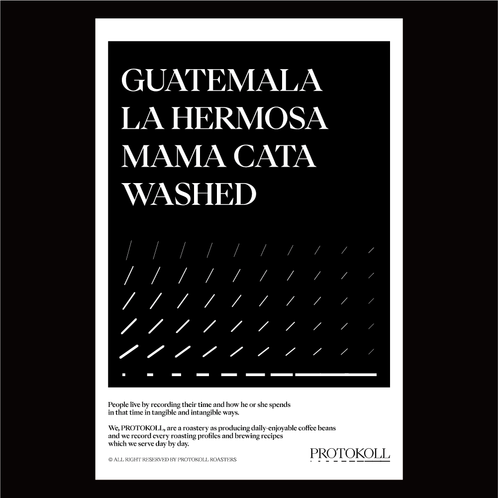 [2023] Mama Cata 농장은 La Hermosa 커피 재배지역에 위치한 농장입니다.마마카타라는 별도의 이름이 있는 이유는 농장주 Max Perez의 어머니 Candida를 기리기 위해 지어졌습니다.가족 대대로 내려오는 오랜 역사와 경험을 바탕으로 종자 선정부터 나무의 종류와 재배기술 등 세밀한 부분까지 관리하여 COE에서도 꾸준히 수상하고 있는 농장입니다.오렌지의 상큼함과 마카다미아의 고소함을 함께 지닌 이 커피는 따뜻하게 마시면 부드러운 황설탕의 아로마가 향긋하게 이어지며, 차갑게 마시면 보다 직관적이고 깔끔함 에프터가 인상적 입니다.프로토콜의 로스터가 좋아하는 클래식한 느낌의 워시드 커피입니다. 원산지 Guatemala지역 Acatenango, La Hermoasa, Mama Cata품종 Bourbon, Caturra, Catuai가공 Washed고도 1,830-1,930m 커핑노트 Cupping NoteOrange • Macadamia • Brown Sugar오렌지 • 마카다미아 • 황설탕 브루잉 가이드 레시피프로토콜의 브루잉 레시피입니다. 이 레시피는 원두 고유의 캐릭터를 또렷하게 느낄 수 있도록 전체적인 밸런스가 잘 느껴지도록 제안합니다. 안내된 방법에 따라 추출하시면, 프로토콜이 생각하는 맛있는 한 잔의 흐름을 가장 안정적으로 즐기실 수 있습니다. 하리오 V60 드리퍼를 기준으로 합니다 추출 전 필터지는 뜨거운 물로 충분히 린싱해 종이 향을 제거하고, 안정적인 추출 환경을 만들어 주세요. [HOT]원두는 18g, 물 온도는 94도를 사용합니다. 다음과 같이 물을 부어줍니다.(뜸) 40g – (30초) 100g – (1분) 80g – (1분 30초) 80g 총 300g의 물을 사용하며,대략적으로 2분 30초 내외로 추출이 완료됩니다. [ICE]원두는 20g, 물 온도는 94도를 사용합니다. 드립 서버에 얼음을 8알 정도를 담고 다음과 같이 물을 부어줍니다.(뜸) 40g – (30초) 60g – (1분) 50g – (1분 30초) 50g 총 200g의 물을 사용하며,대략적으로 2분 10초 내외로 추출이 완료됩니다.