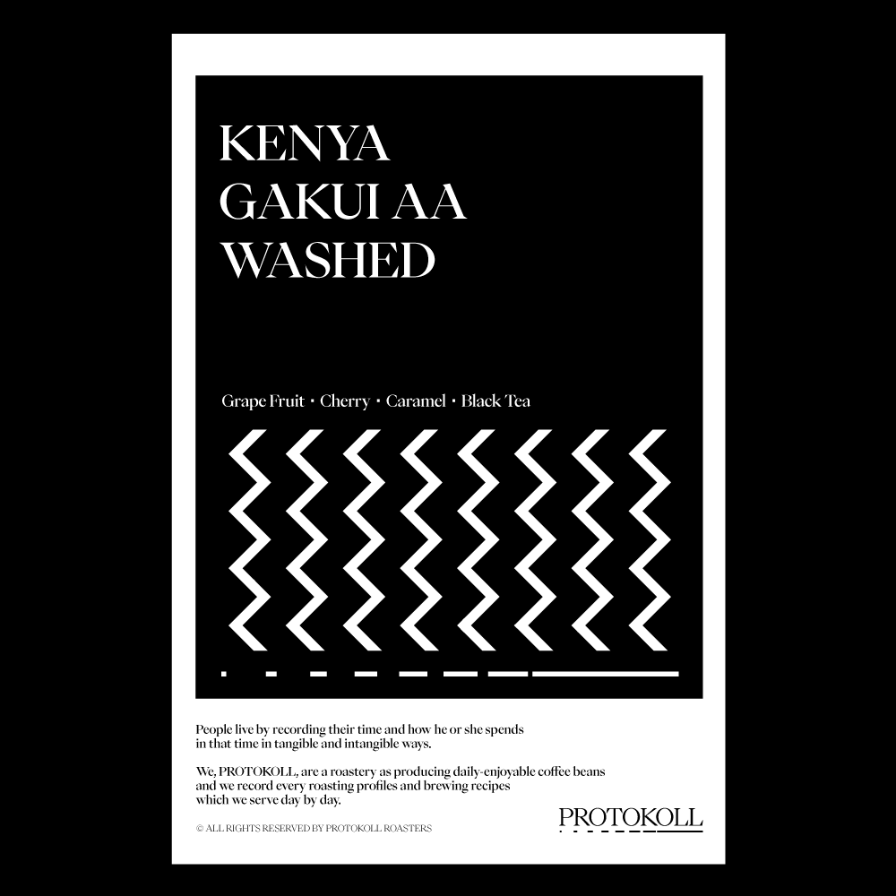 [2025] 1996년에 설립된 가쿠이 공장은 가두, 비우, 기추구 공장을 관리하는 가쿤두 농민 조합에 소속되어 있습니다.1960년도부터 시작된 이 조합은 4,000명 규모의 농부들을 지원하며 높은 생두 퀄리티를 위한 노력을 기울이고 있습니다.커피 체리를 24시간 동안 깨끗한 물에 담그고 장시간 보관함에 따라 세포조직 속에 단백질이 발효되어 아미노산이 발달하게 됩니다.그 결과 산미의 수준이 높아지고 복합적인 과일 향을 더 많이 머금게 됩니다.위 과정을 거친 이 커피는 자몽과 체리 같은 과일의 향미와 카라멜의 단맛, 홍차와 같은 긴여운을 보여줍니다. 원산지 Kenya지역 Embu Country, Gakui품종 SL28, SL34, Ruiru11, Batian 가공 Fully Washed고도 1,800m 커핑노트 Cupping NoteGrapefruit • Cherry • Caramel • Black Tea자몽 • 체리 • 카라멜 • 홍차 브루잉 가이드 레시피프로토콜의 브루잉 레시피입니다. 이 레시피는 원두 고유의 캐릭터를 또렷하게 느낄 수 있도록 전체적인 밸런스가 잘 느껴지도록 제안합니다. 안내된 방법에 따라 추출하시면, 프로토콜이 생각하는 맛있는 한 잔의 흐름을 가장 안정적으로 즐기실 수 있습니다. 하리오 V60 드리퍼를 기준으로 합니다 추출 전 필터지는 뜨거운 물로 충분히 린싱해 종이 향을 제거하고, 안정적인 추출 환경을 만들어 주세요. [HOT]원두는 18g, 물 온도는 94도를 사용합니다. 다음과 같이 물을 부어줍니다.(뜸) 40g – (30초) 100g – (1분) 80g – (1분 30초) 80g 총 300g의 물을 사용하며,대략적으로 2분 30초 내외로 추출이 완료됩니다. [ICE]원두는 20g, 물 온도는 94도를 사용합니다. 드립 서버에 얼음을 8알 정도를 담고 다음과 같이 물을 부어줍니다.(뜸) 40g – (30초) 60g – (1분) 50g – (1분 30초) 50g 총 200g의 물을 사용하며,대략적으로 2분 10초 내외로 추출이 완료됩니다.