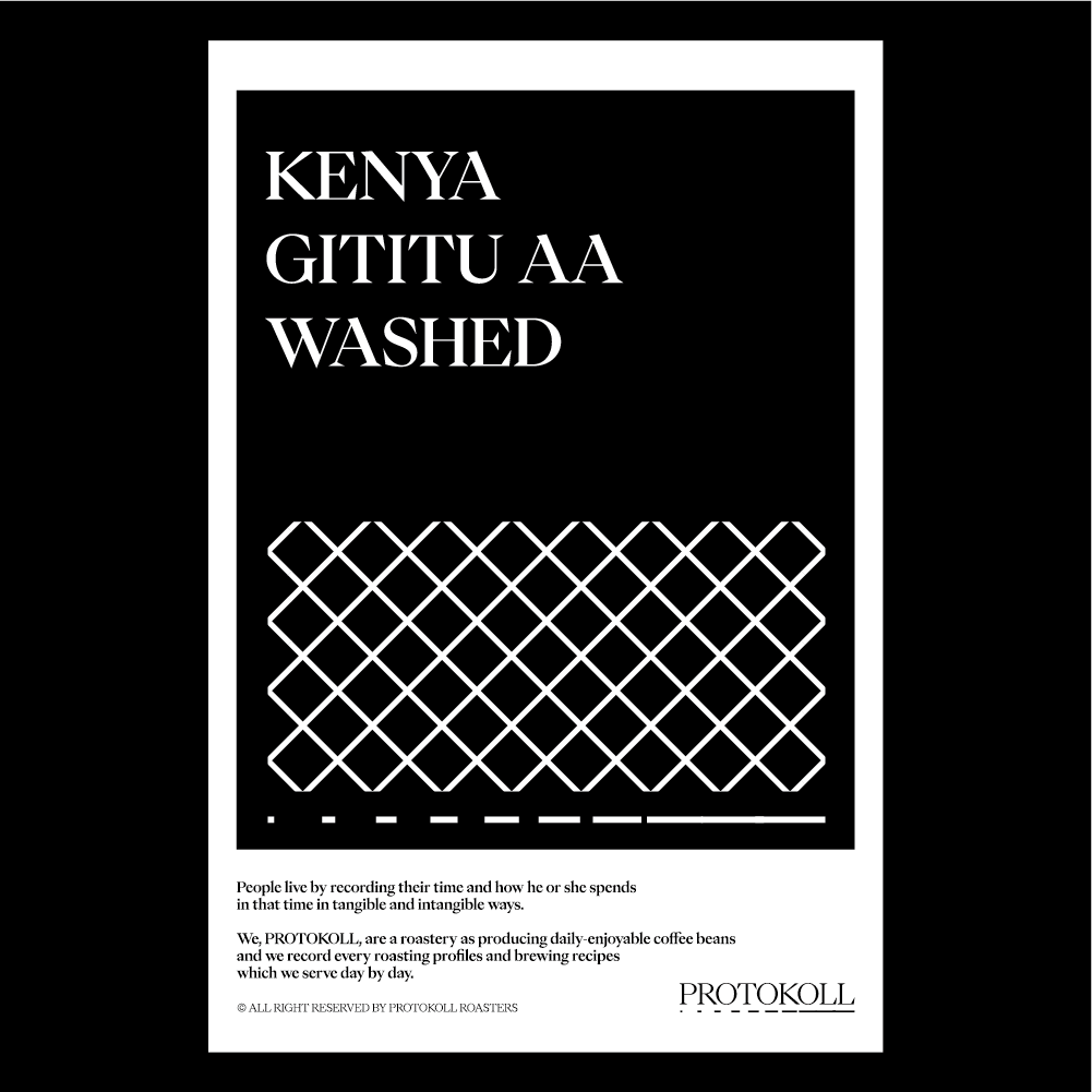 [2022] 이 커피는 Gititu Farmers Cooperative Society (FCS)의 회원인 수많은 소규모 농부들에 의해 생산되었습니다.Gititu FCS는 케냐 키암부 지역에 위치해 있으며 1954년에 설립되어 오랜 역사를 지닌 곳 중 하나입니다.모든 커피 체리는 수작업으로 수확되고 같은 날 가공소로 이동해 세심한 선별 과정을 거치기 좋은 품질을 유지합니다.워싱 스테이션에서 세척을 거친 커피를 펄핑 후 단맛을 증가시키기 위해 하루 동안 발효, 깨끗하게 세척하여 레이즈드 베드에서 천천히 건조합니다. 오랫동안 프로토콜에서는 좋은 케냐 커피를 소개하고 싶었습니다.케냐 기티투는 케냐 특유의 묵직한 산미와 자몽, 건포도의 향미가 특징인 커피입니다.특히 이 커피가 지닌 조청 같은 단맛이 굉장히 매력적입니다. 천천히 즐겨보시기 바랍니다. 원산지 Kenya지역 Kiambu품종 SL28, SL34, Ruirull가공 Washed고도 1,750m 커핑노트 Cupping NoteGrape Fruit • Raisin • Black Current • Grain Syrup백자몽 • 건포도 • 블랙커런트 • 조청 브루잉 가이드 레시피프로토콜의 브루잉 레시피입니다. 이 레시피는 원두 고유의 캐릭터를 또렷하게 느낄 수 있도록 전체적인 밸런스가 잘 느껴지도록 제안합니다. 안내된 방법에 따라 추출하시면, 프로토콜이 생각하는 맛있는 한 잔의 흐름을 가장 안정적으로 즐기실 수 있습니다. 하리오 V60 드리퍼를 기준으로 합니다 추출 전 필터지는 뜨거운 물로 충분히 린싱해 종이 향을 제거하고, 안정적인 추출 환경을 만들어 주세요. [HOT]원두는 18g, 물 온도는 94도를 사용합니다. 다음과 같이 물을 부어줍니다.(뜸) 40g – (30초) 100g – (1분) 80g – (1분 30초) 80g 총 300g의 물을 사용하며,대략적으로 2분 30초 내외로 추출이 완료됩니다. [ICE]원두는 20g, 물 온도는 94도를 사용합니다. 드립 서버에 얼음을 8알 정도를 담고 다음과 같이 물을 부어줍니다.(뜸) 40g – (30초) 60g – (1분) 50g – (1분 30초) 50g 총 200g의 물을 사용하며,대략적으로 2분 10초 내외로 추출이 완료됩니다.