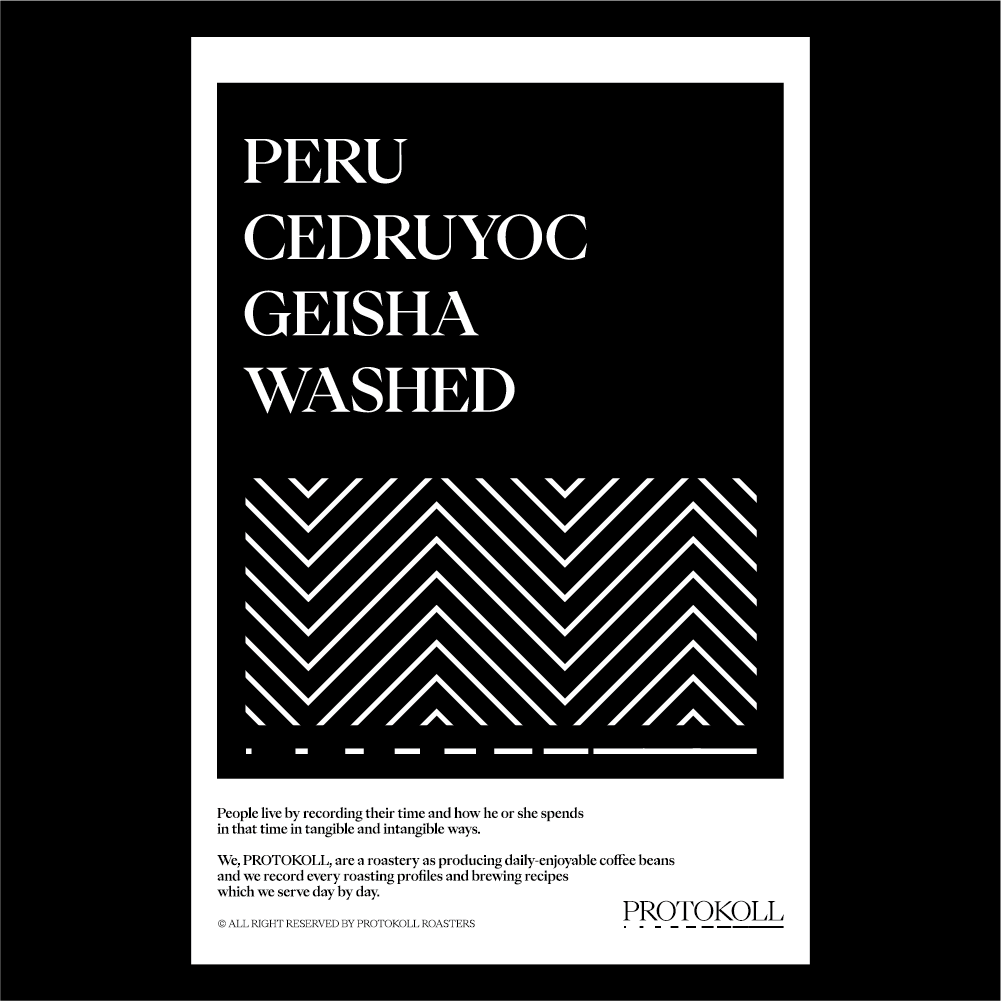 [2023] 세드루요크 농장은 깨끗한 커피, 고품질의 커피를 만드는 농장으로 알려져 있습니다.고도 1800m 이상의 높은 곳에 위치한 세드루요크 농장은 다양한 동물, 식물 그리고 떼루아를 가진 장점을 승화시켜 독특하고 고품질의 커피를 생산하고 있습니다.그 결과 2019년과 2021년 COE에 오르게 되었고 2022년에는 COE 11위를 차지하게 되었습니다.이 커피는 고급스러운 꽃 차가 연상되는 재스민, 베르가못의 향과 뒤따라오는 레몬그라스의 산미가 좋은 조화를 이루며 깔끔하고 차분한 마무리가 인상 깊습니다.슬슬 다가오는 봄에 따뜻하게 마시기 좋은 커피라 생각합니다. 원산지 Peru지역 Cuzco, Departamento De Cuzco, Cedruyoc품종 Geisha가공 Fully Washed고도 1,800m 커핑노트 Cupping NoteBergamot • Jasmine • Lemongrass • Green Tea베르가못 • 자스민 • 레몬그라스 • 그린티 브루잉 가이드 레시피프로토콜의 브루잉 레시피입니다. 이 레시피는 원두 고유의 캐릭터를 또렷하게 느낄 수 있도록 전체적인 밸런스가 잘 느껴지도록 제안합니다. 안내된 방법에 따라 추출하시면, 프로토콜이 생각하는 맛있는 한 잔의 흐름을 가장 안정적으로 즐기실 수 있습니다. 하리오 V60 드리퍼를 기준으로 합니다 추출 전 필터지는 뜨거운 물로 충분히 린싱해 종이 향을 제거하고, 안정적인 추출 환경을 만들어 주세요. [HOT]원두는 18g, 물 온도는 94도를 사용합니다. 다음과 같이 물을 부어줍니다.(뜸) 40g – (30초) 100g – (1분) 80g – (1분 30초) 80g 총 300g의 물을 사용하며,대략적으로 2분 30초 내외로 추출이 완료됩니다. [ICE]원두는 20g, 물 온도는 94도를 사용합니다. 드립 서버에 얼음을 8알 정도를 담고 다음과 같이 물을 부어줍니다.(뜸) 40g – (30초) 60g – (1분) 50g – (1분 30초) 50g 총 200g의 물을 사용하며,대략적으로 2분 10초 내외로 추출이 완료됩니다.