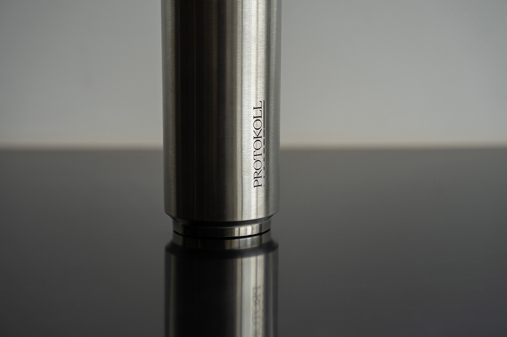 프로토콜 로고가 새겨진 스테인리스 텀블러입니다.