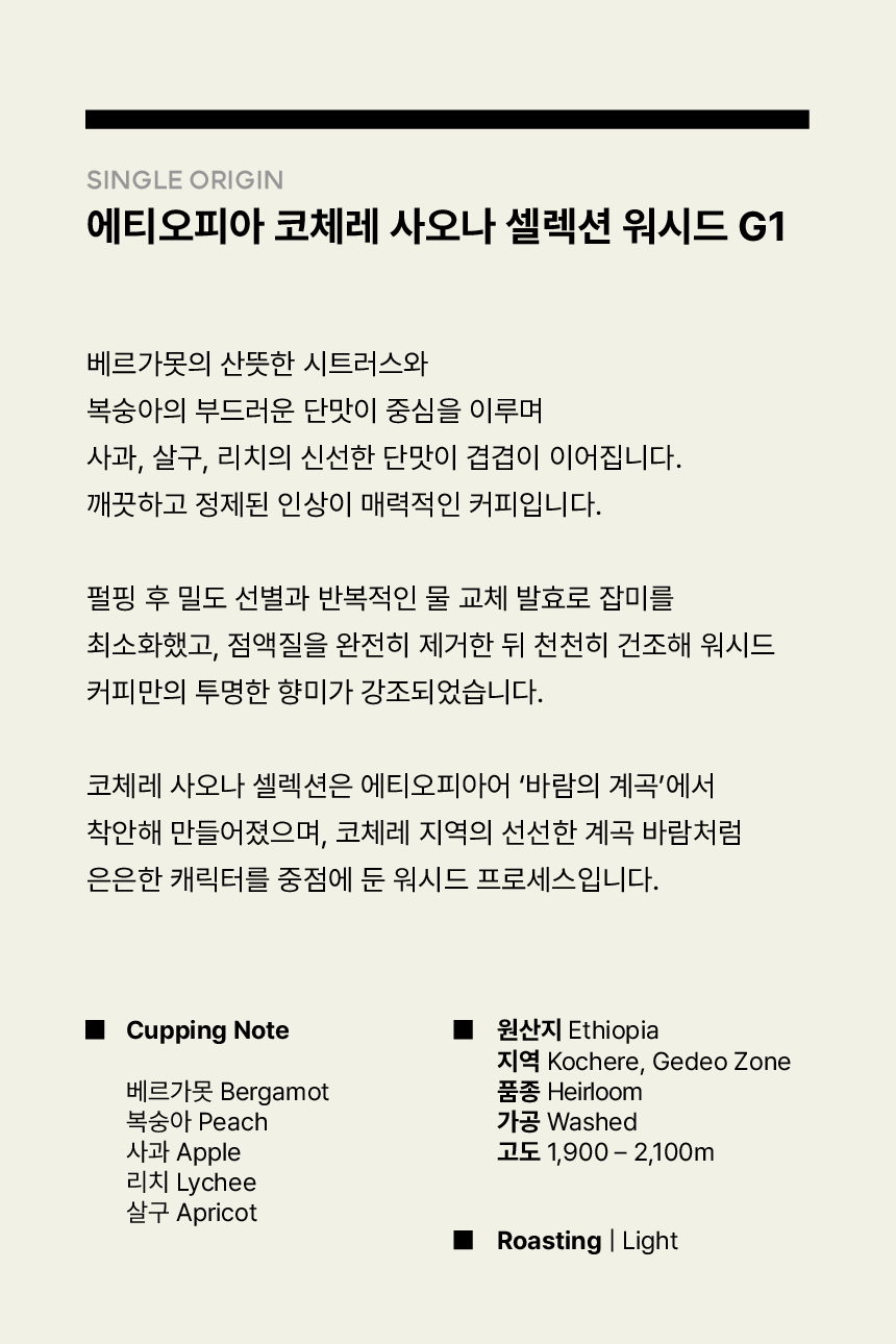 에티오피아 코체레 사오나 셀렉션 워시드 500g