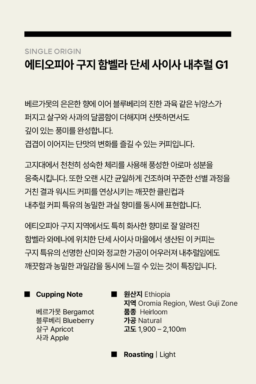 에티오피아 구지 함벨라 단세 사이사 내추럴 G1
