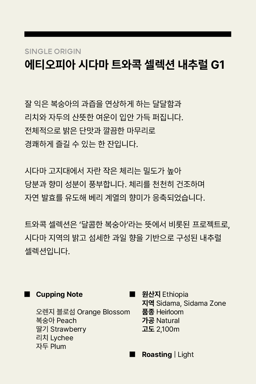 에티오피아 시다마 트와콕 셀렉션 내추럴 G1