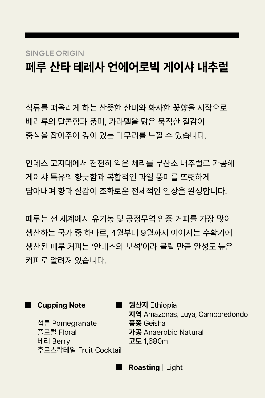 페루 산타 테레사 언에어로빅 게이샤 내추럴