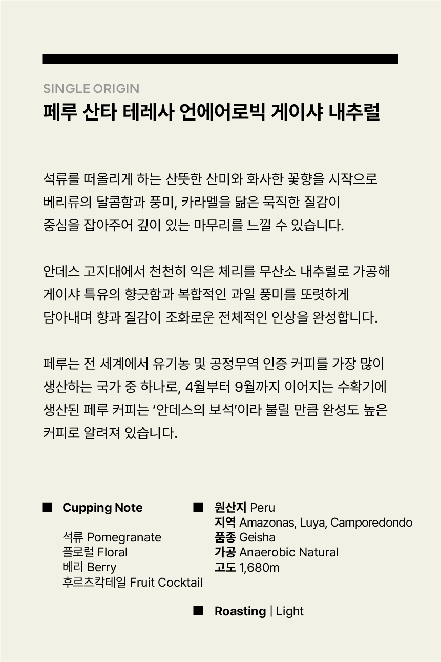 페루 산타 테레사 언에어로빅 게이샤 내추럴 500g