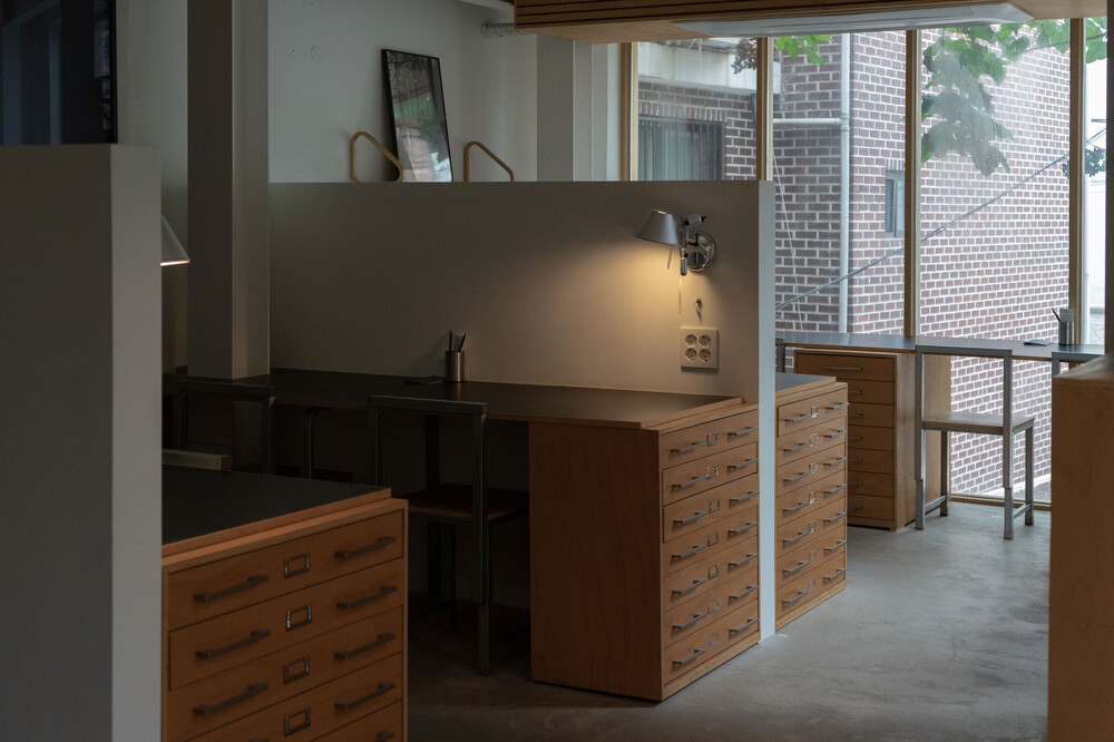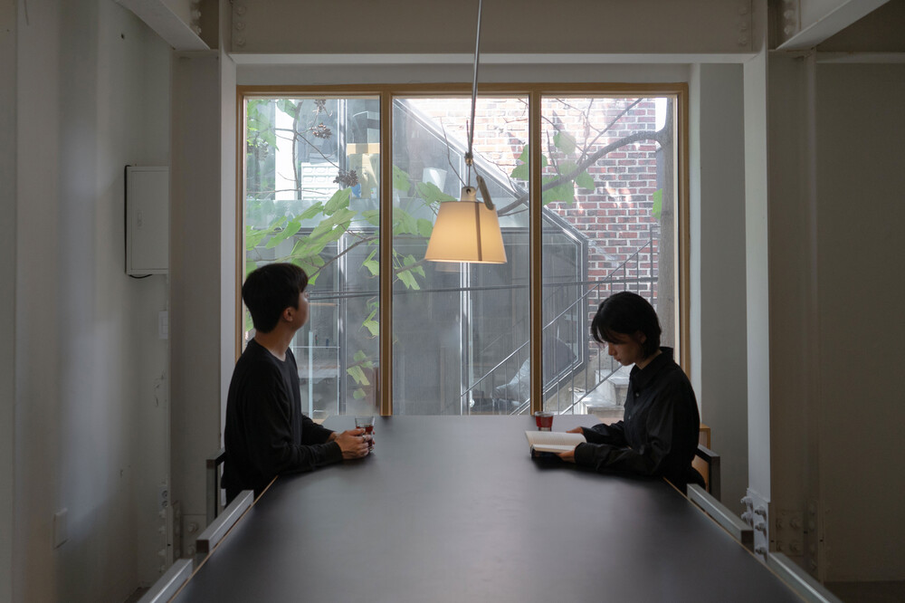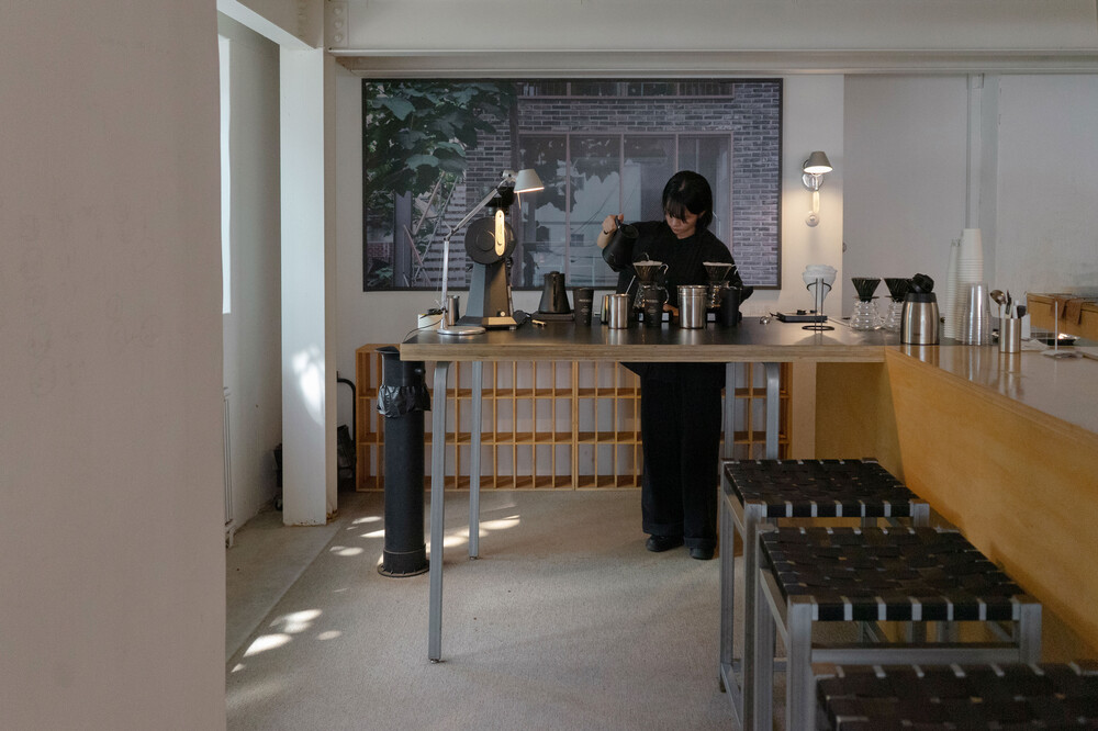 커피를 시음하고 주문할 수 있는 1층에 바리스타의 작업실이 있으며, 2층과 3층은 크고 작은 테이블로 구조가 구분되어 각자만의 시간에 집중할 수 있도록 합니다.